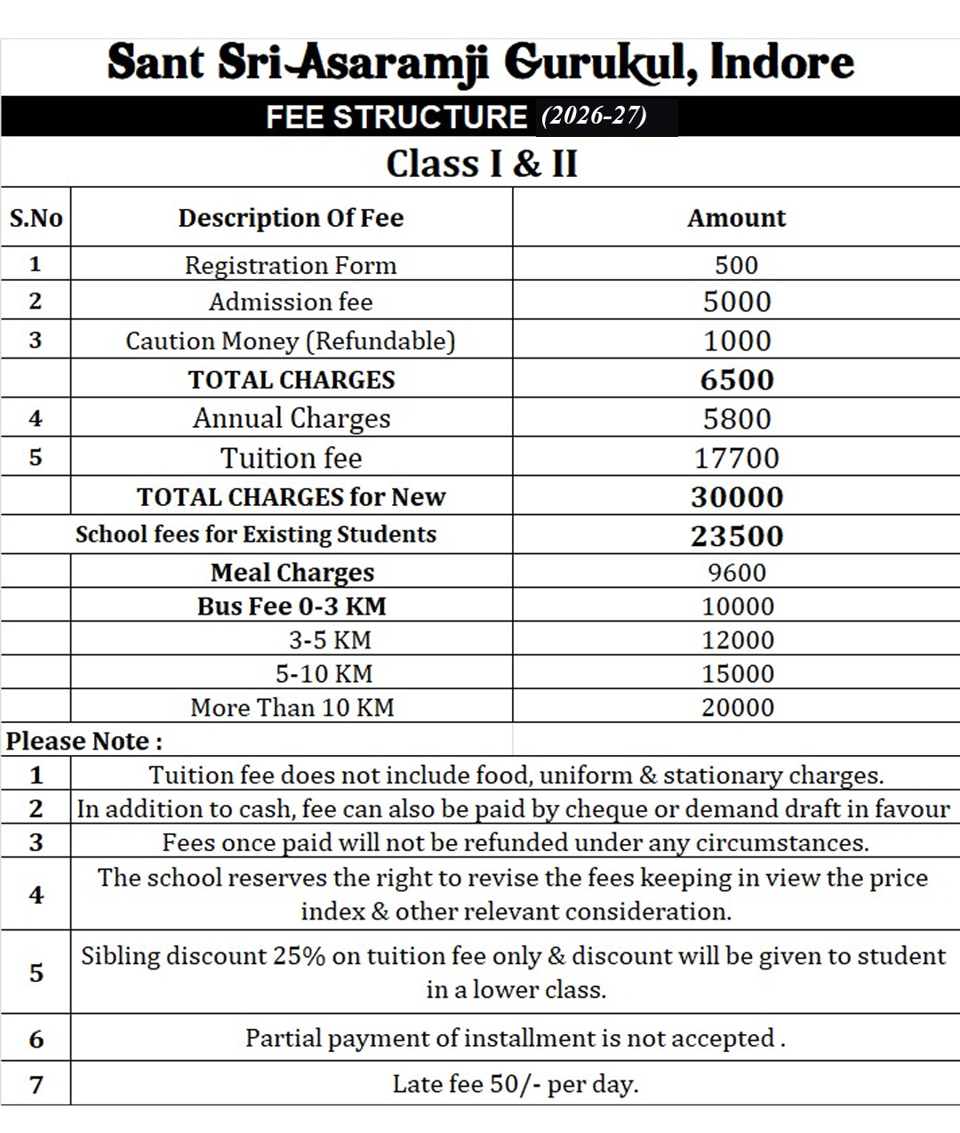 Fee Chart Admission