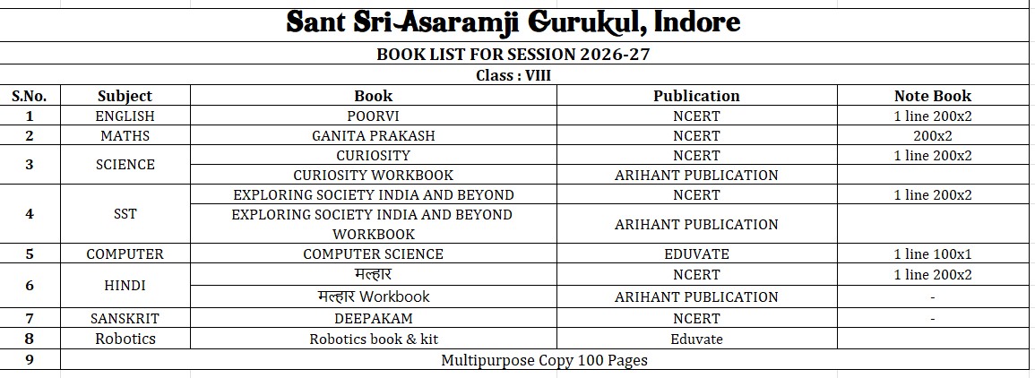 Phone: 9770446078 - 8AM to 4PM info@indoregurukul.co.in